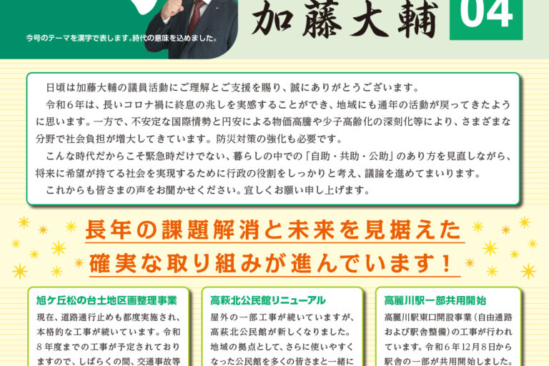 2期目のスタート最初の定例会を終えて、後援会だよりを作成しました。...